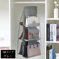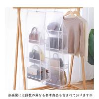バッグ収納ラック 3段 吊り下げ ハンガー式 6ポケット 両面収納 便利 シンプル クローゼット収納 コンパクト 折りたたみ 半透明 隙間収納 鞄 カ