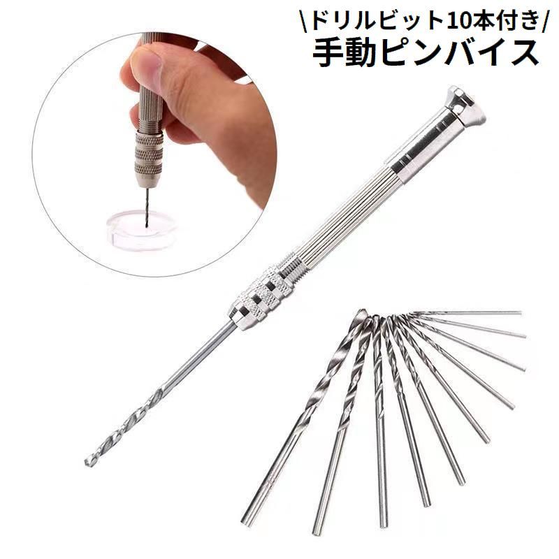 ピンバイス ハンドドリル ドリルビット10本付き 替え刃 手動 工具 ツール 精密作業 穴あけ レジン DIY 木工 プラモデル