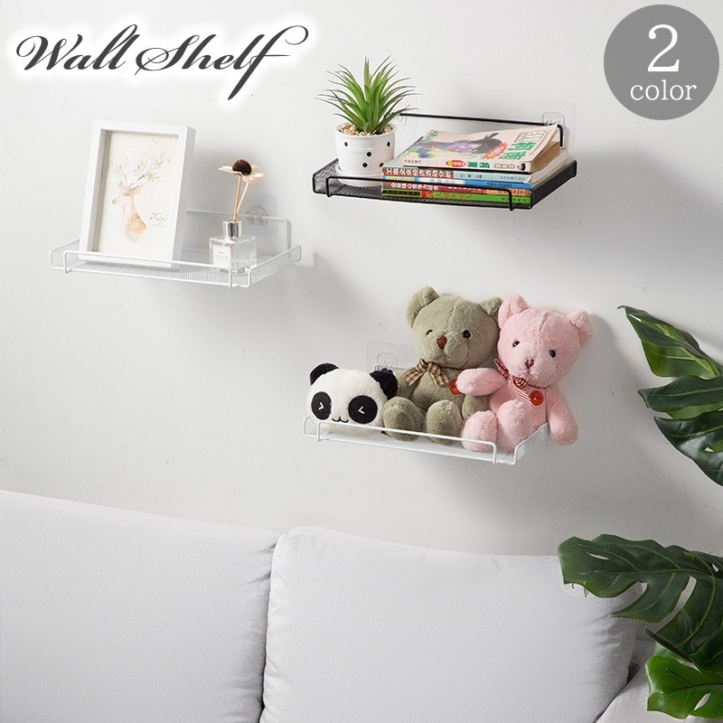 ウォールシェルフ ウォールラック 壁掛け 壁面収納 粘着フック式 メッシュ 飾り棚 小物置き WiFiルーター シンプル インテリア 収納用品