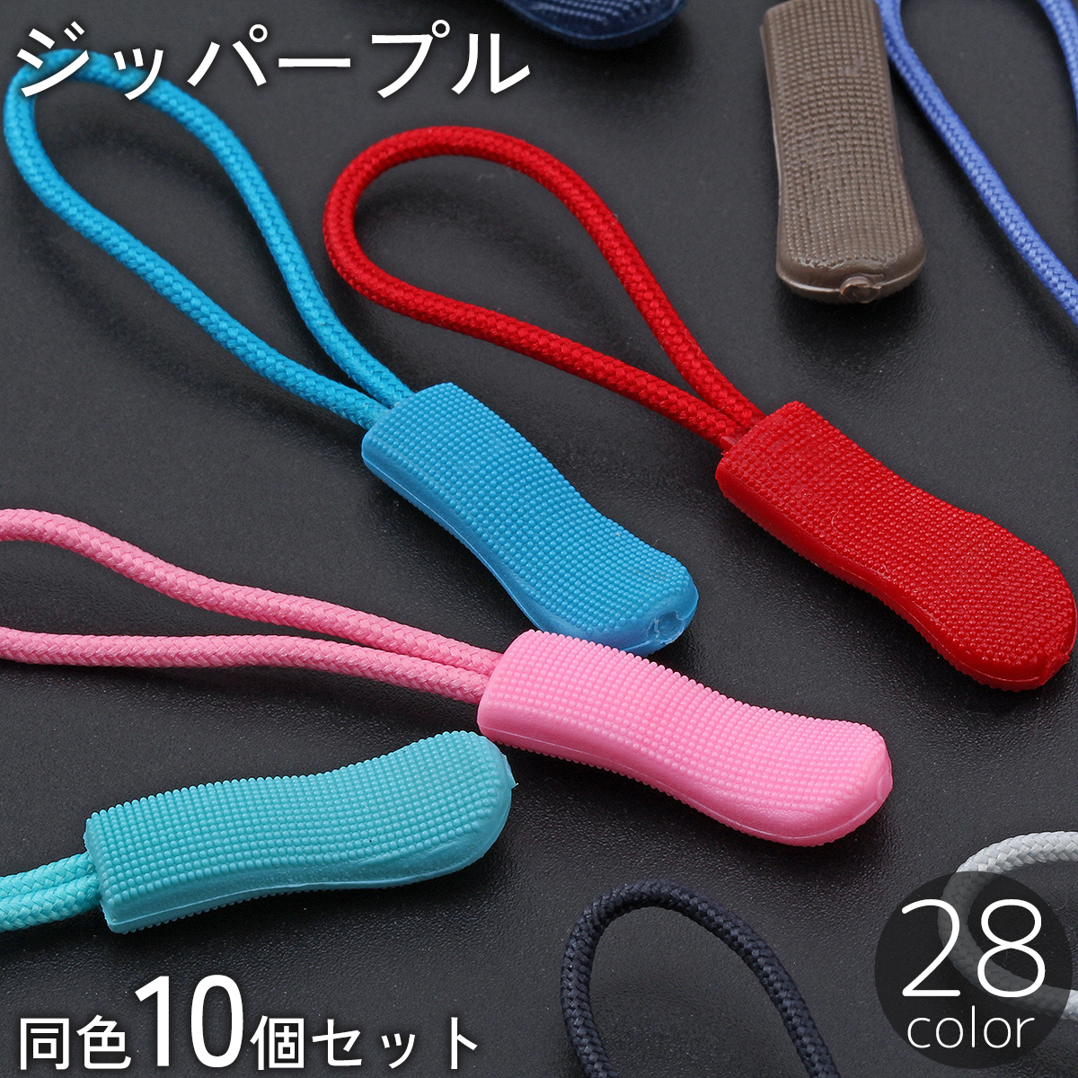 ファスナーの持ち手として取り付けるジッパープル、10個セットです。