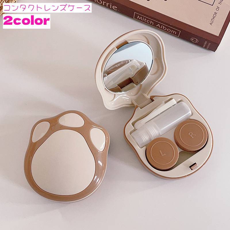 コンタクトレンズケース カラコンケース ソフトレンズ用 コンタクトケース ピンセット付き 猫型 ネコ 肉球 持ち運び 収納ケース ソフトコンタクト 可