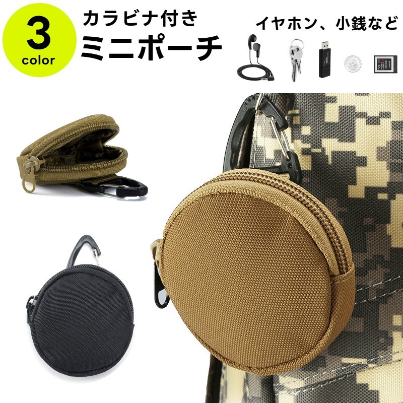 ミニポーチ カラビナ付き 小型 ミニ プチ アーミー ミリタリー メンズ レディース 小銭入れ イヤホンケース アクセサリポーチ アウトドア 小物入れ