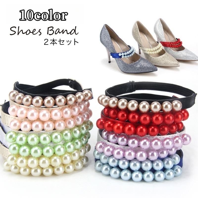 シューズバンド シューズベルト シューズストラップ 2本セット レディース 女性 靴用アクセサリー パンプス ハイヒール フェイクパール 脱げ防止 お