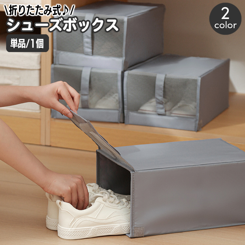 シューズボックス 折りたたみ 単品 1個 シューズケース 靴箱 収納ボックス 折り畳み ファスナー メッシュ 収納ケース 下駄箱 積み重ね スタッキン