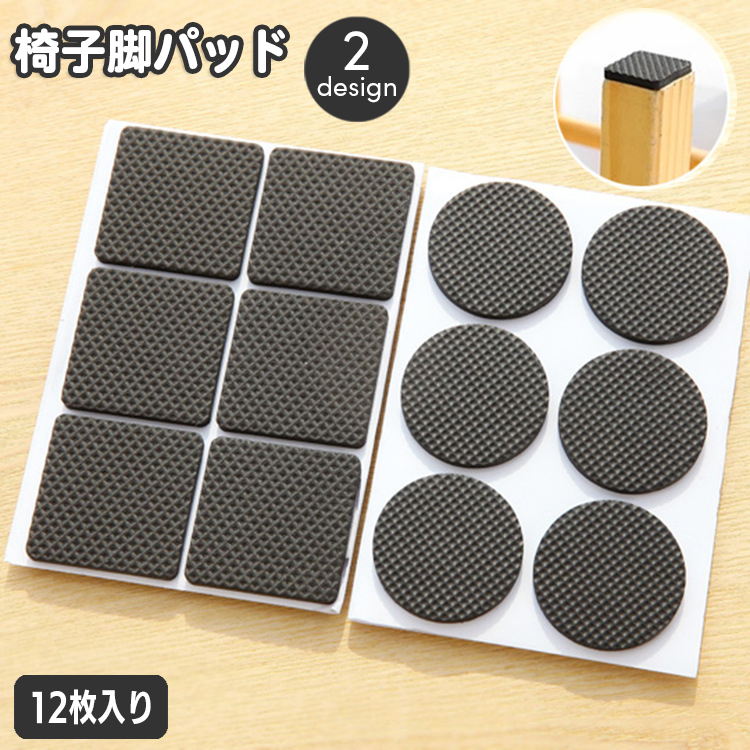 椅子脚パッド 12枚入り 3脚分 椅子足 家具保護パッド 滑り止め 防滑 四角形 スクエア 丸型 ラウンド 傷防止 騒音対策 貼り付け 粘着式 イス
