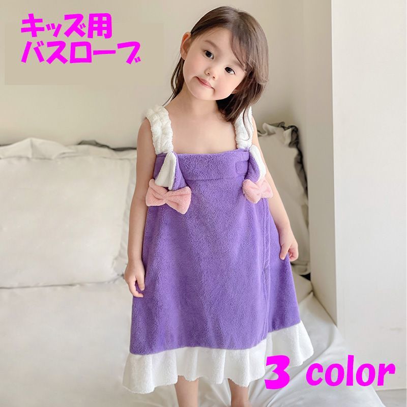 バスローブ キッズ ルームウェア ラップタオル ノースリーブ ワンピース 女の子 タオル かわいい おしゃれ お嬢様 ピンク パープル