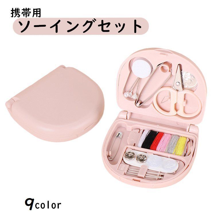 携帯用ソーイングセット 裁縫セット ミニサイズ コンパクト 旅行 外出先 持ち運び ポータブル ソーイングボックス 裁縫箱 縫い針 ハサミ 糸 カラバ