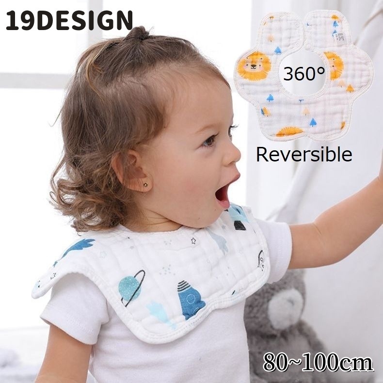 スタイ よだれかけ ビブ お食事エプロン 360 回転 リバーシブル 両面 6層ガーゼ ベビー 赤ちゃん 乳児 女の子 男の子 花びら型 スナップボタ