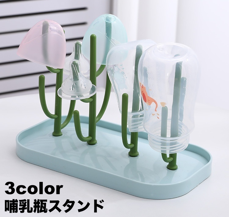 哺乳瓶スタンド 哺乳瓶ラック 水切りラック 哺乳瓶立て 哺乳瓶ホルダー 乾燥 組み立て簡単 ベビー用品 サボテン型 コップ立て ボトルスタンド アクセ