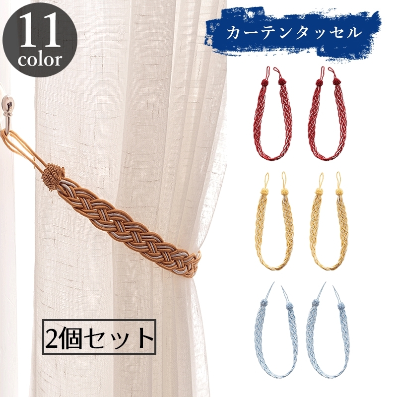 カーテンタッセル 2個セット ペア カーテン留め カーテンホルダー 留め紐 ロープ 高級感 光沢感 カラバリ豊富 おしゃれ インテリア雑貨