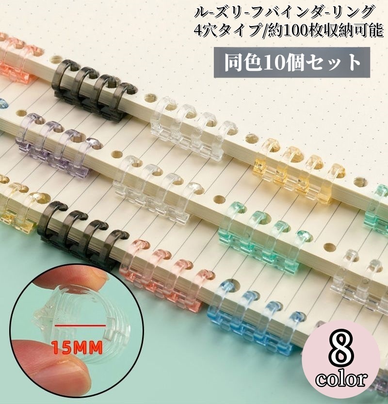 バインダーリング 10個セット ルーズリーフバインダーリング 4穴 穴径15mm A4 A5 B5製本用とじ具 システム手帳リング 透明学習カード 単
