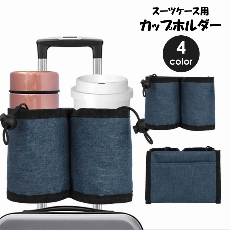 スーツケース用 ドリンクホルダー ボトルホルダー カップホルダー ペットボトルホルダー ポケット付き キャリーケース用 取付け簡単 オックスフォード