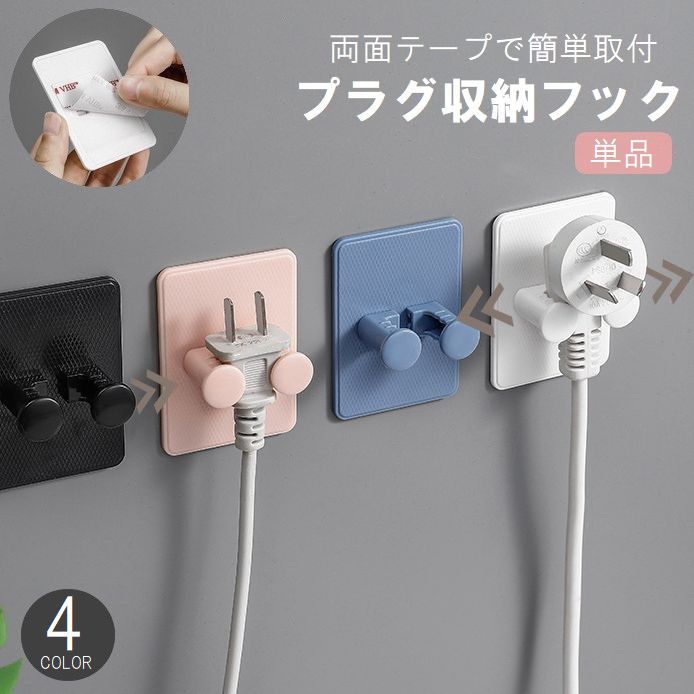 粘着フック プラグ収納フック 単品 壁掛け コンセント収納 配線整理 工具不要 穴あけ不要 簡単取り付け 整理整頓 おしゃれ シンプル