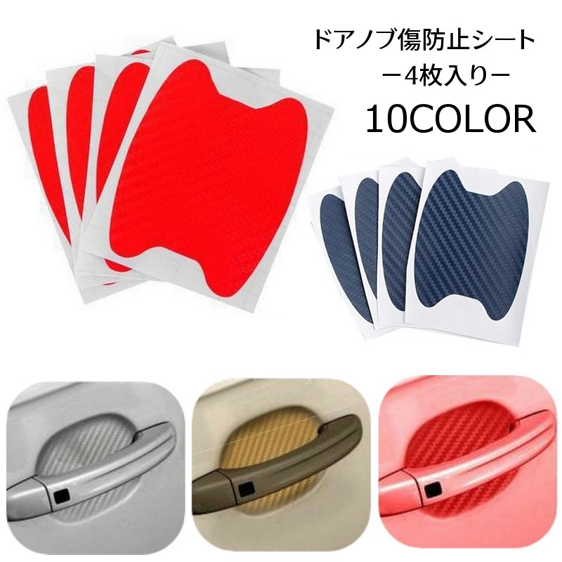 ドアノブ傷防止シート 4枚入り 保護シート ドアハンドル シールタイプ ステッカータイプ カーボン調 カー用品 車用品 カーエクステリア カーボディ用