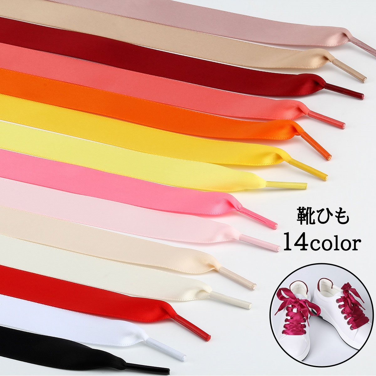 靴ひも 靴紐 2本セット シューレース レディース 女性 女の子 リボン 幅広 スニーカー シューズ 単色 無地 おしゃれ かわいい