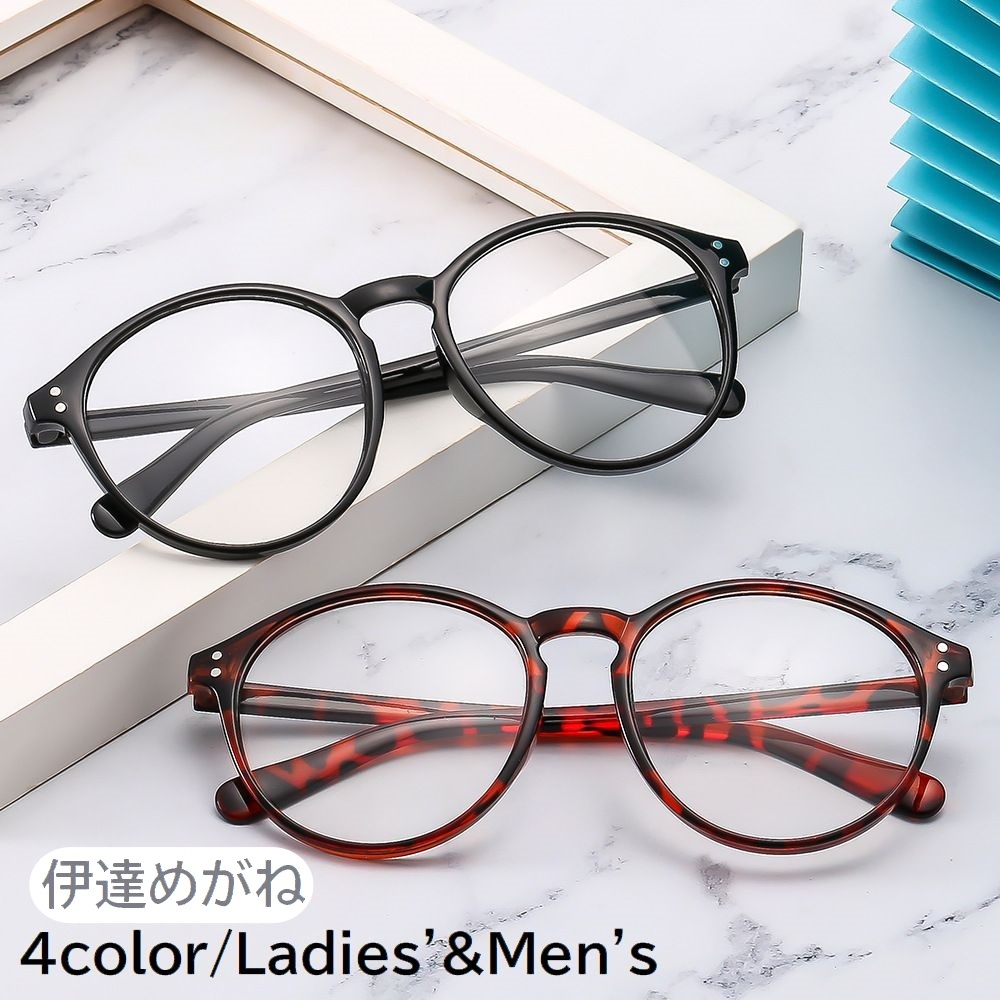 伊達めがね 伊達メガネ 男女兼用 ユニセックス レディース メンズ 婦人 紳士 眼鏡 ボストン型 度なし 無地 ヒョウ柄 レオパード 豹柄 ブラック