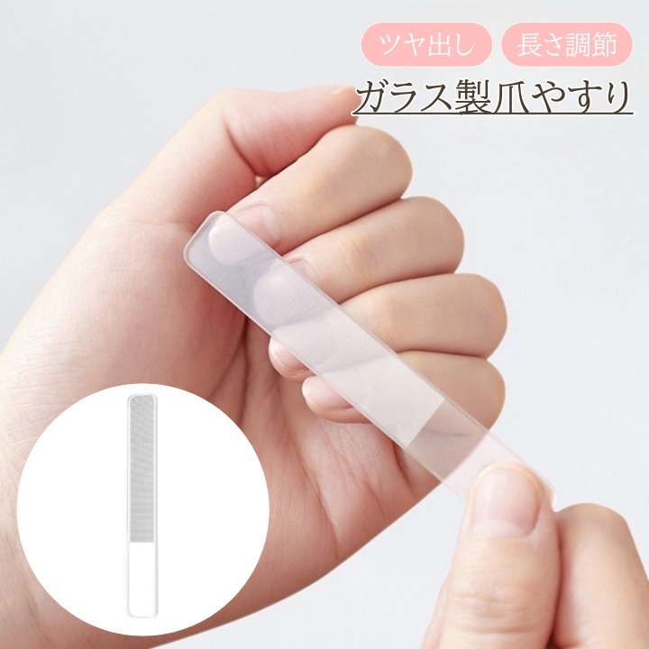 爪やすり ガラス製 爪磨き 艶出し ツヤだし ネイルケア 長さ やすり セルフケア ネイルファイル サロン ツール スクエア 四角 バッファー 使いや