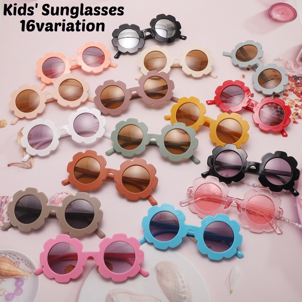 サングラス キッズ 子供 男の子 女の子 花 フラワー ラウンド型 カラーレンズ 色付きレンズ UV400 紫外線対策 UVカット かわいい おしゃれ