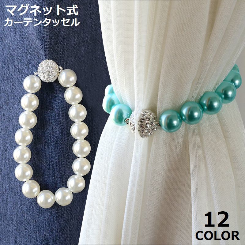 カーテンタッセル 1本 磁石付き マグネット式 カーテンホルダー 留め具 カーテンアクセサリー ラインストーン ビジュー パール調