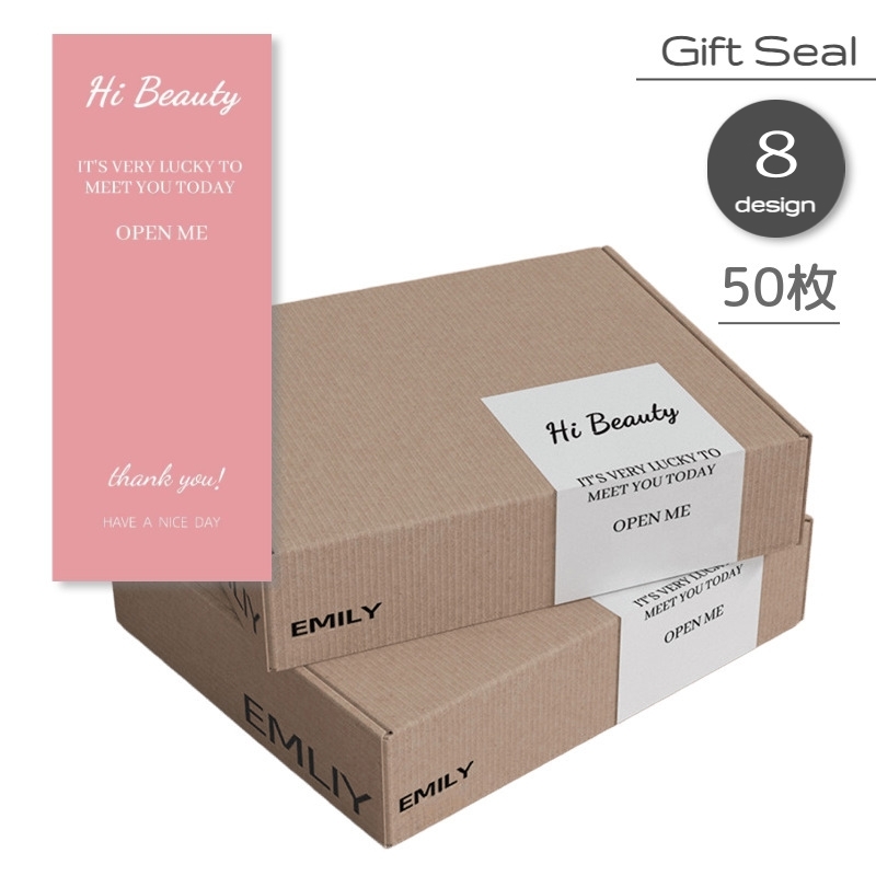 プレゼントのラッピングに、感謝の気持ちを伝えるギフトシール同デザイン50枚セットです。