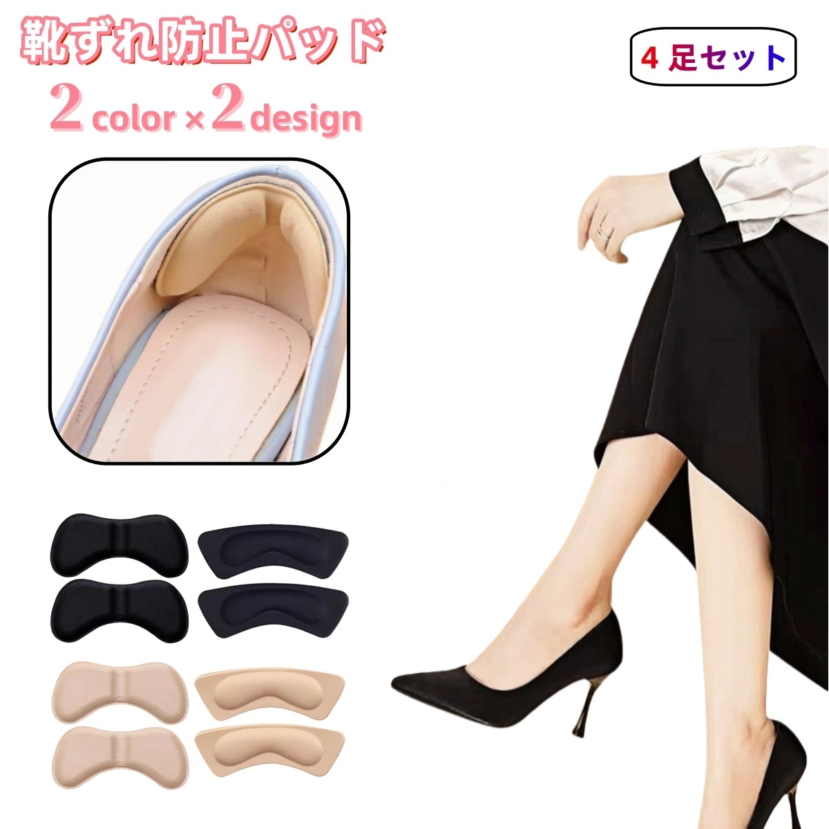 靴ずれ防止パッド 4足セット かかとパッド かかとクッション 靴ケア用品 粘着式 靴擦れ パンプス ハイヒール スポーツシューズ かかと 保護 怪我防