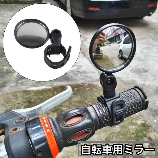 自転車用ミラー バックミラー サイドミラー サイクルミラー バーエンドミラー 回転 角度調節可能 ハンドル 簡単 取り付け 丸型 自転車用アクセサリー