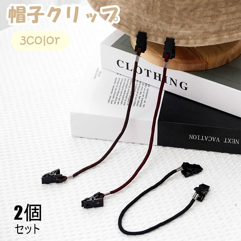 帽子クリップ 2個セット ハットストラップ 帽子ストッパー 顎紐 帽子用アクセサリー 無地 単色 シンプル メガネ マスク 紛失防止 固定 保護 風飛