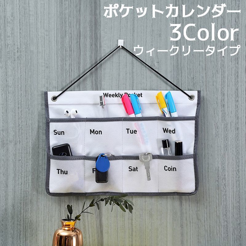 ポケットカレンダー ウォールポケット 週間 ウィークリー 壁掛け 吊り下げ 収納ポケット 小物収納 お薬カレンダー 小物入れ スケジュール 家計簿 便