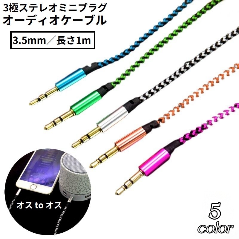 オーディオケーブル ステレオミニプラグ オス-オス 3.5mm 長さ1m 3極 変換 AUX 金メッキ端子 パソコン スマホ タブレット