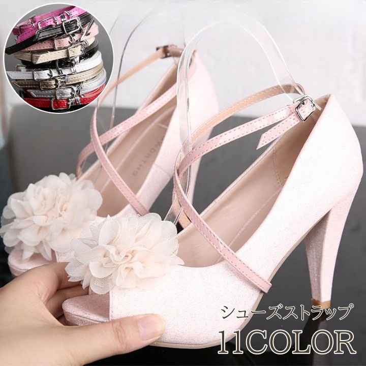 シューズストラップ レディース ヒールストラップ シューズバンド ストラップ ロング クロス ベロア調 スエード かわいい おしゃれ パンプス ヒール