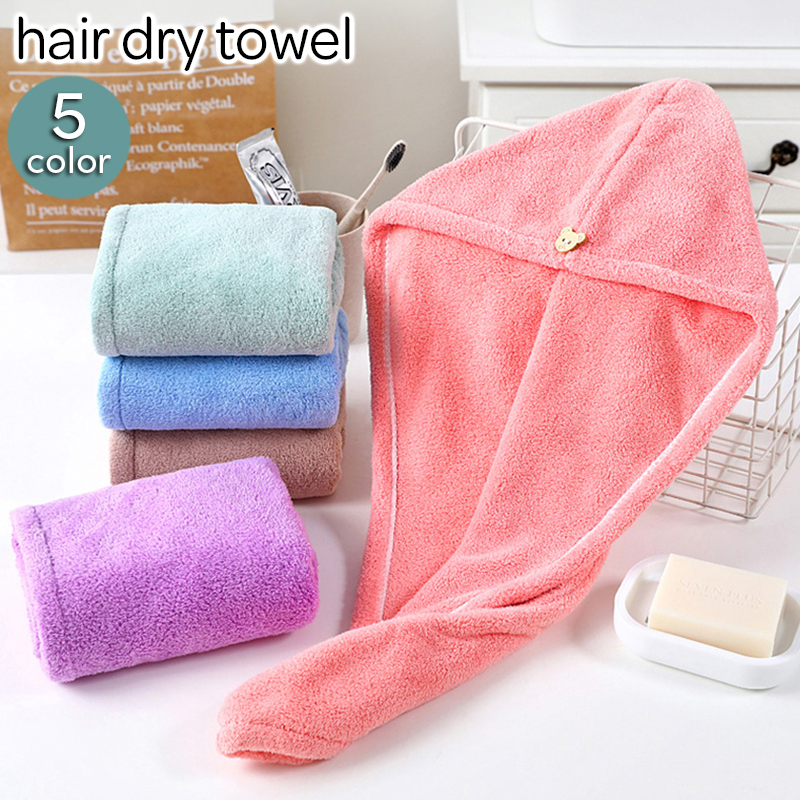 ヘアドライタオル タオルキャップ ドライキャプ レディース 女性用 吸水 シンプル クマ くま 無地 単色 おしゃれ かわいい お風呂 バス用品 プー