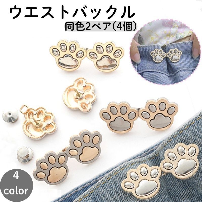 ウエストバックル ウエストアジャスター 2ペア 2個セット ウエスト調整 フック ピン クリップ ボタン ジーンズ デニム ズボン スカート ボトムス