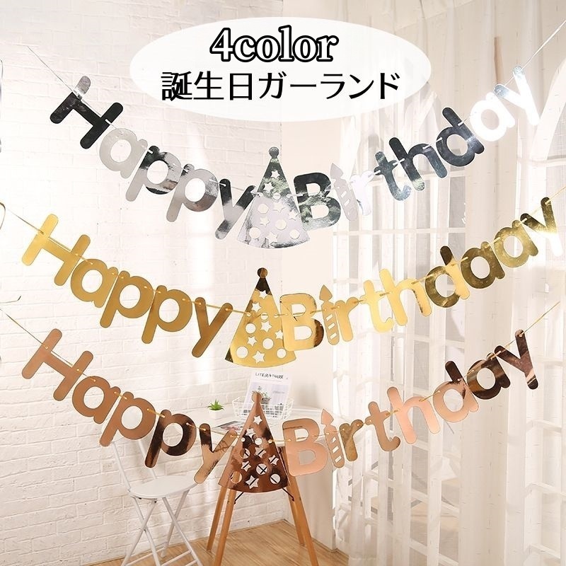 ガーランド 誕生日 Happy Birthday パーティー イベント ゴールドカラー シルバーカラー ローズゴールド 英字 バースデーハット 部屋飾
