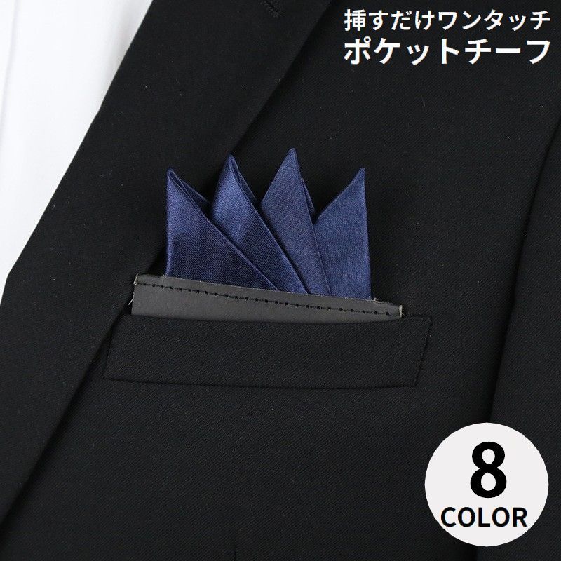 ポケットチーフ メンズ ワンタッチ 簡易ポケットチーフ ハンカチーフ 挿すだけ 4ピークス 台紙付き 無地 シルクタッチ 結婚式 冠婚 パーティー ギ