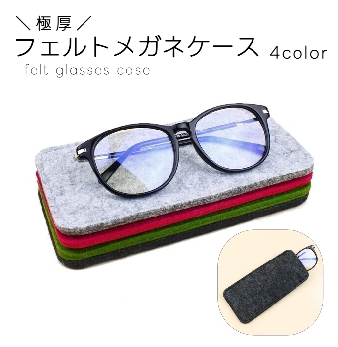 メガネケース 眼鏡ケース めがね入れ サングラスケース フェルト ペンケース 極厚 ソフト 小物入れ 収納 携帯 持ち運び 無地 シンプル お洒落 プ
