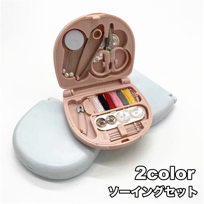 ソーイングセット 裁縫セット コンパクト ミニサイズ 持ち歩き 持ち運び 携帯用 ポータブル 縫い針 糸 糸通し ハサミ 安全ピン 旅行 外出先