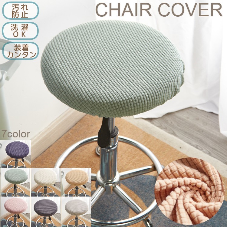 椅子カバー チェアカバー 丸椅子カバー 回転椅子カバー 丸形 キャスター 単色 無地 厚手 ワッフル生地 フィット 伸縮 ストレッチ 模様替え
