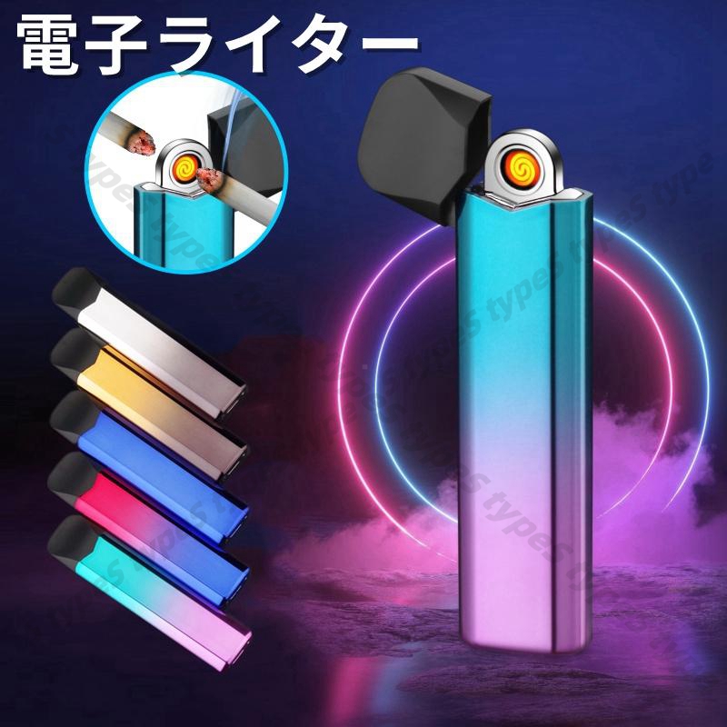 電子ライター ライター 小型 薄型 充電式 ガス・オイル不要 防風 軽量 薄型 プレゼント 電子ターボライター 無炎 静音