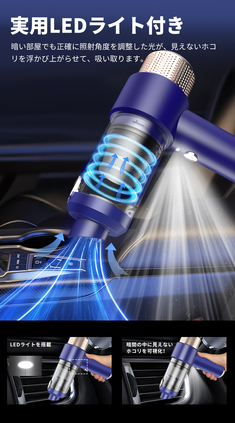 2025最新 ハンディクリーナー コードレス 掃除機 強力吸引 LEDライト付き 洗える双重フィルター ミニ掃除機 軽量 車内 家庭用