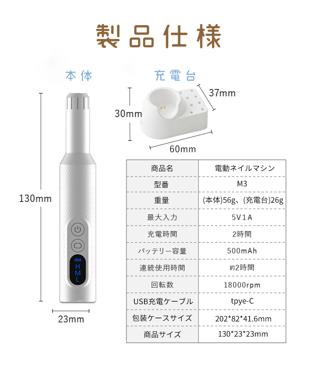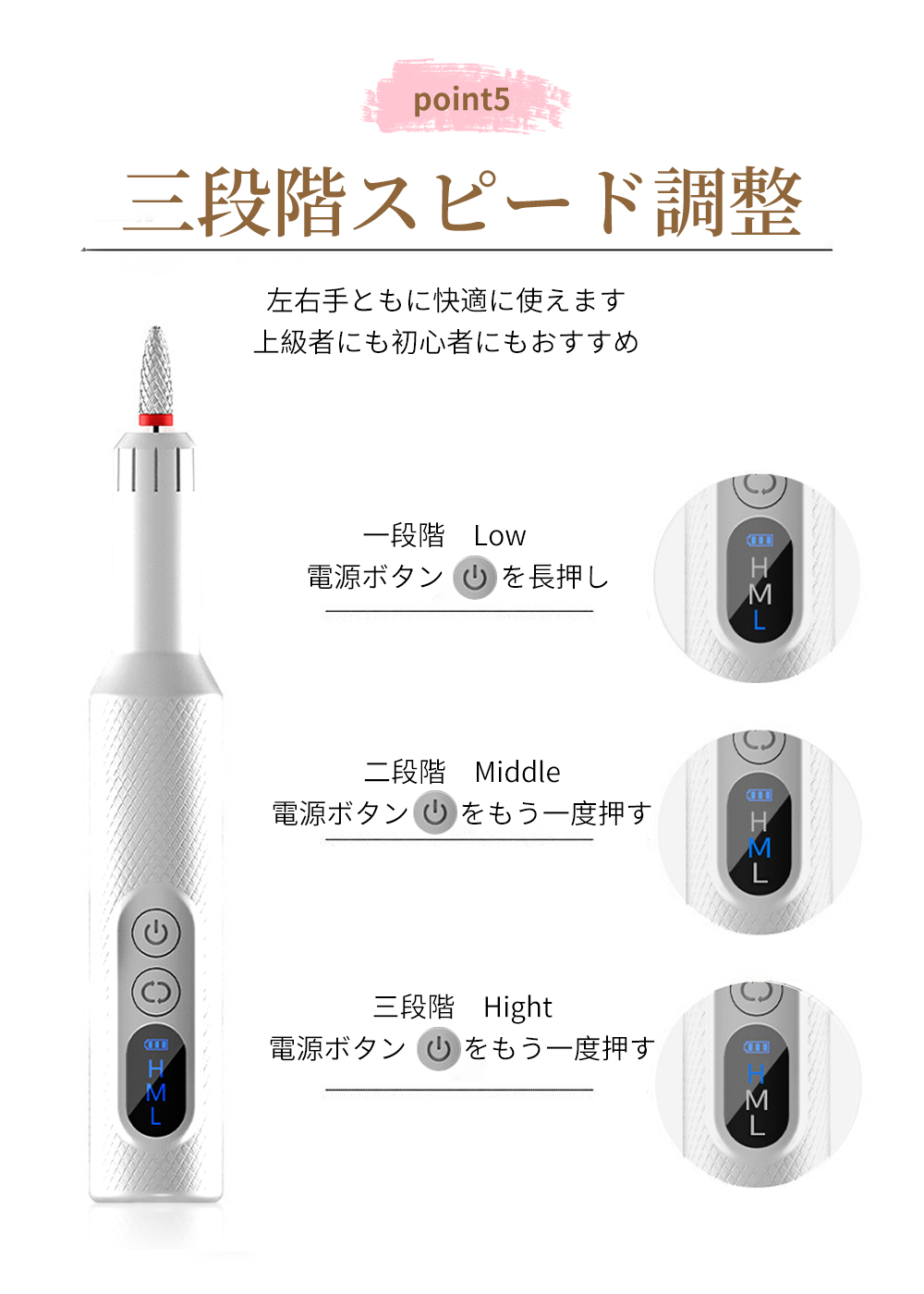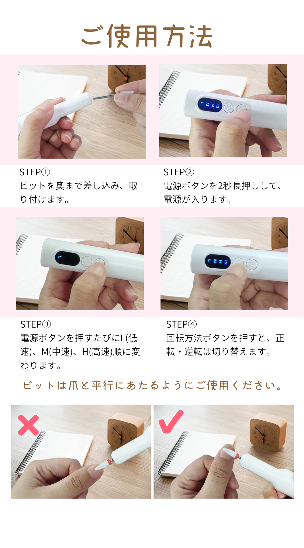 【コードレスUSB充電式&携帯便利】従来の電動ネイルケアは使用中充電しなければなりませんが、こちらのM3進化版のUSB充電式ネイルマシンは高品質なリチウムバッテリー(500mAh大容量)を採用、使用中充電しなくでも全然OKです、簡単に使用できます。