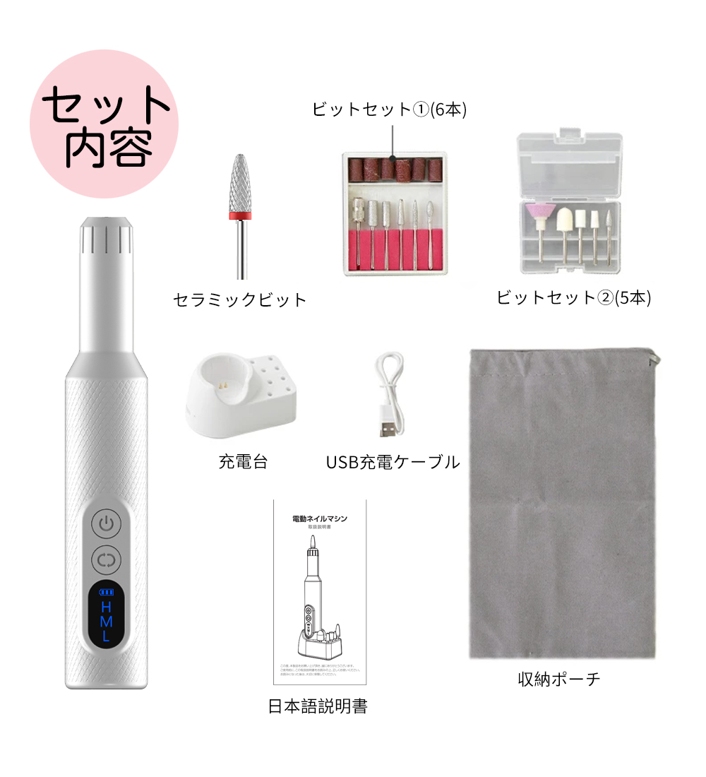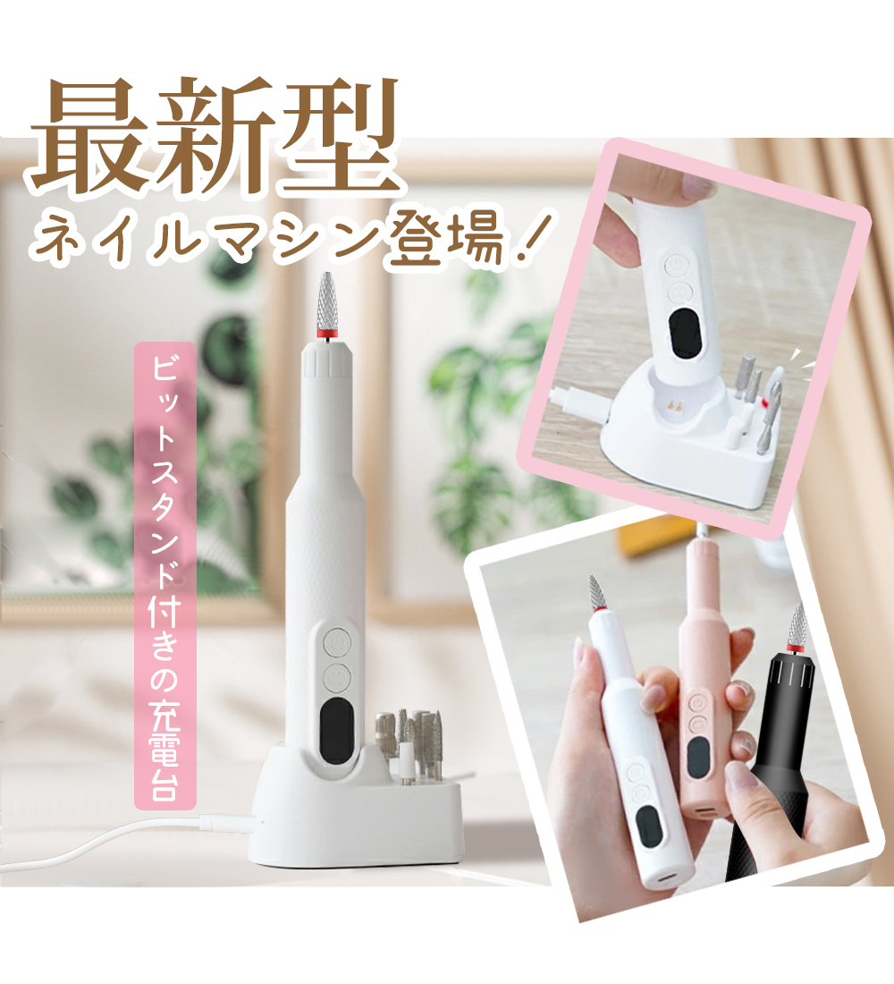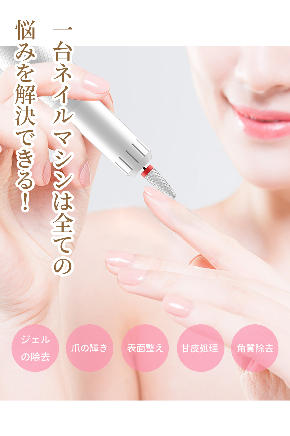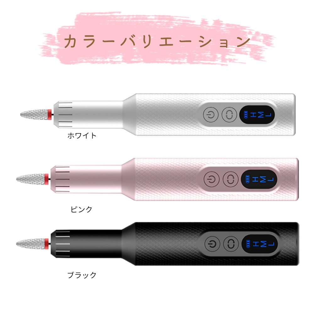 ネイルマシン 電動 コードレス 低振動 500mAh大容量 バッテリー残量表示 ネイルケア 充電式 正/逆回転 初〜上級者モデル 自宅ケア