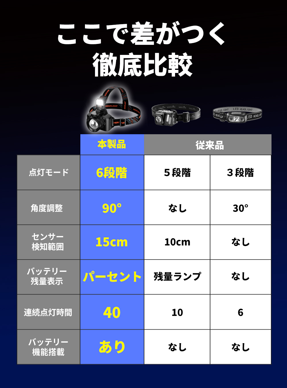 センシング機能を搭載しており、手の動きだけで点灯・消灯が可能。接触不要なので、手が汚れている場合などスイッチを押しにくいときでも使用でき便利です。