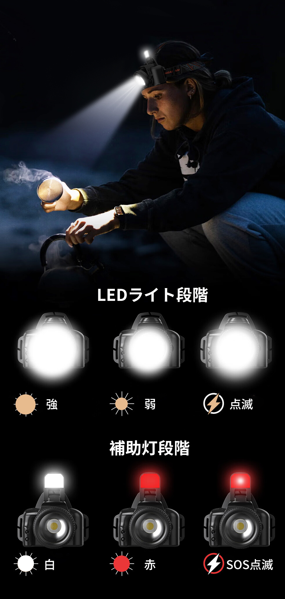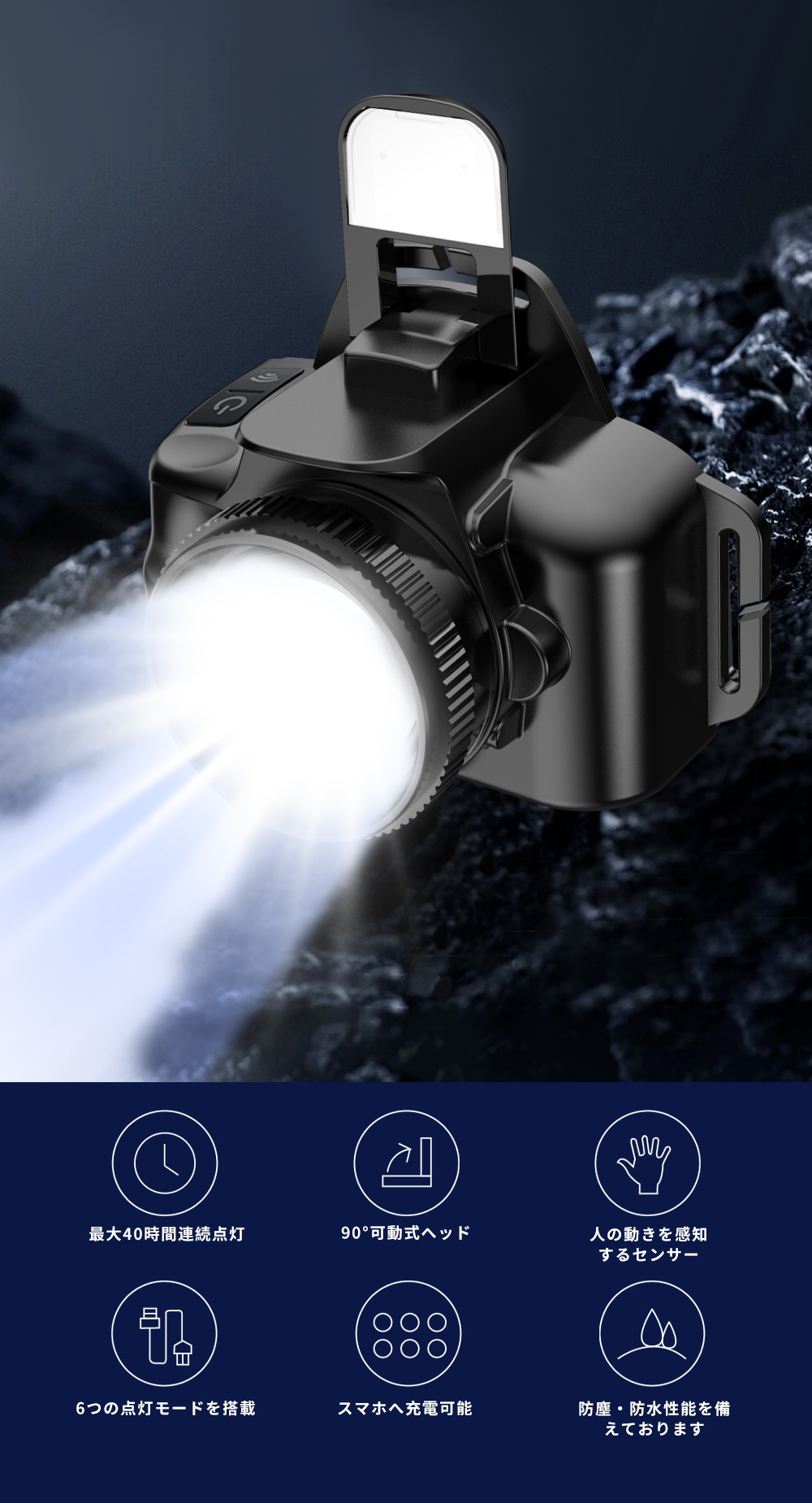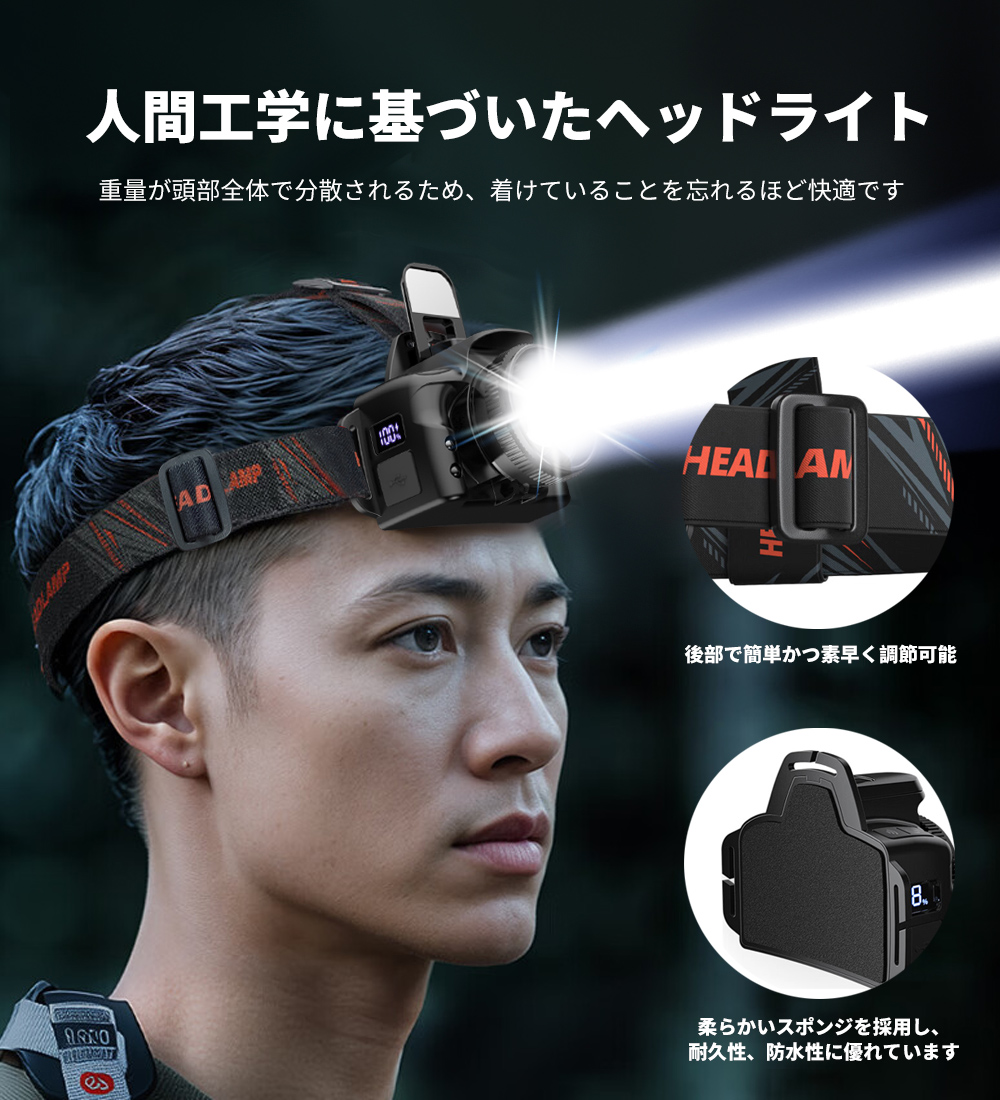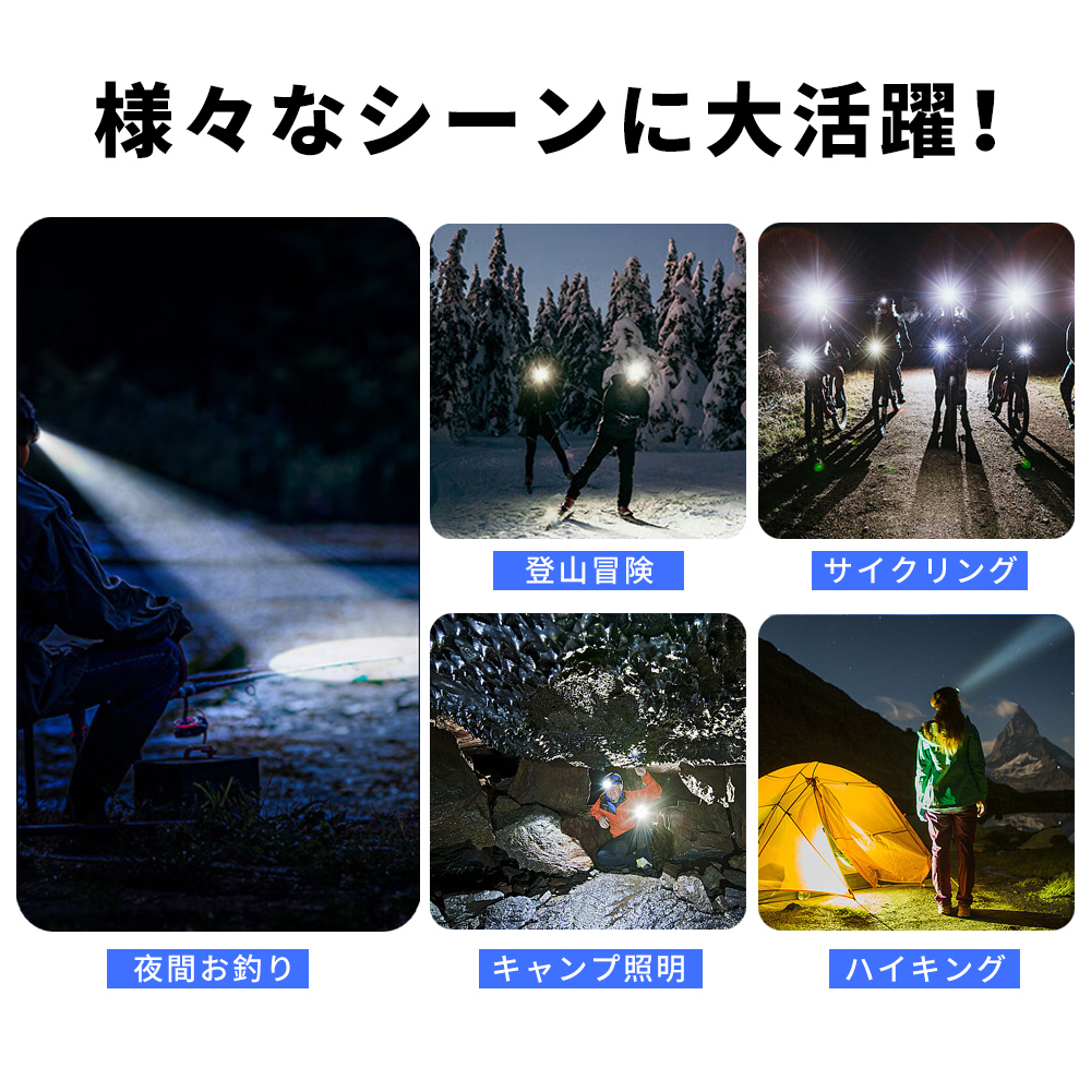 ヘッドライト 充電式 LEDヘッドランプ 高輝度 6モード 防水 アウトドア キャンプ 釣り 登山 防災 サイクリング ハイキング 小型 軽量
