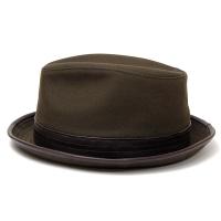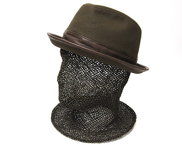 定番の1つの10号パラフィン生地をつかった中折れ帽タイプの帽子で、革使いの得意なRetterらしく、リボン部分とつば先に革を使ってアクセントにした帽子です。