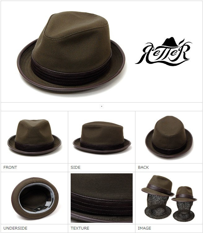 革使いの得意なRetterらしく、リボン部分とつば先に革を使ってアクセントにした帽子です。