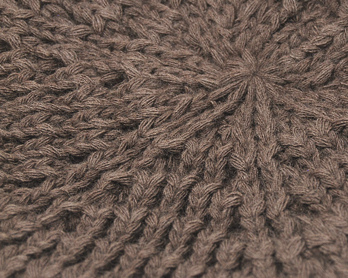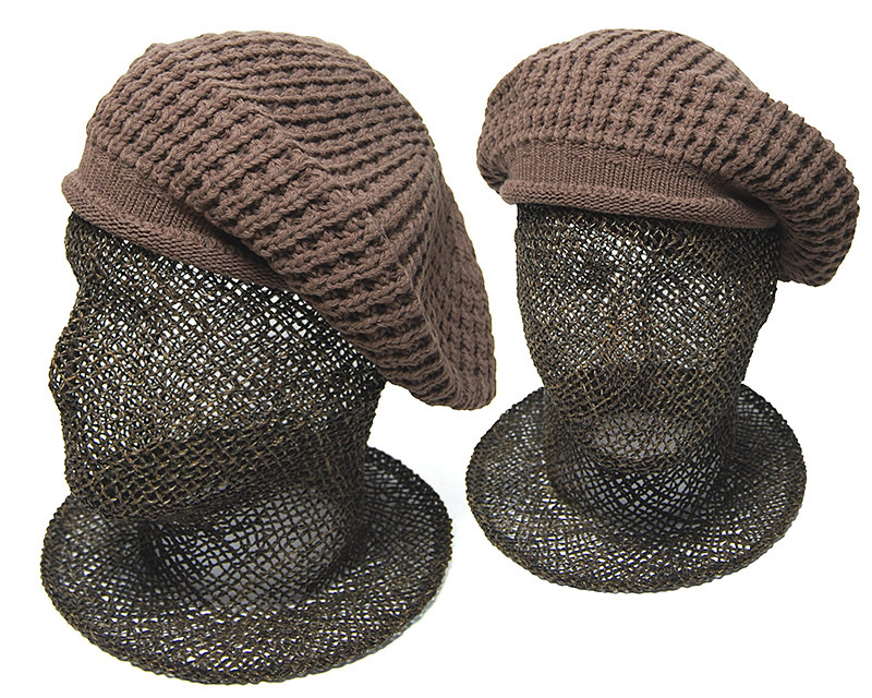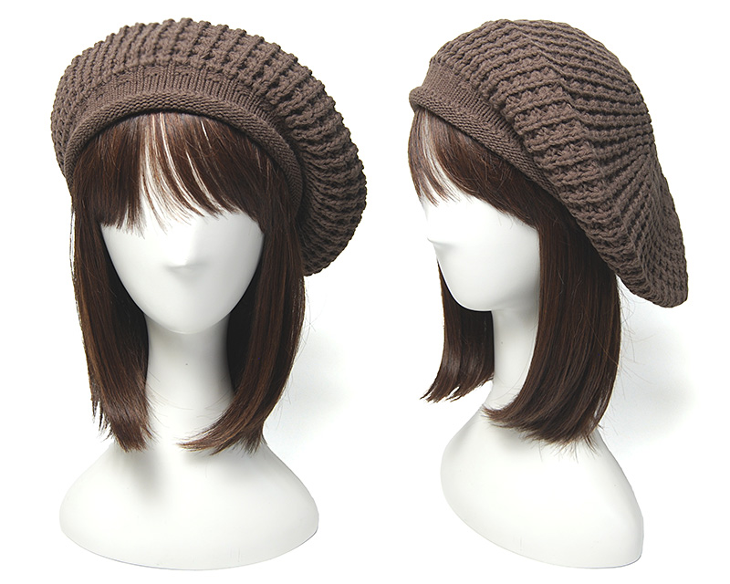 今回の帽子は、ウール混アクリルヤーンを使ったラフにかぶれるニット素材のベレー帽。