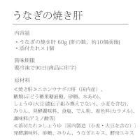 商品内容:うなぎの焼き肝 60g(肝の数、約10個前後)、添付たれ×1袋(20g)