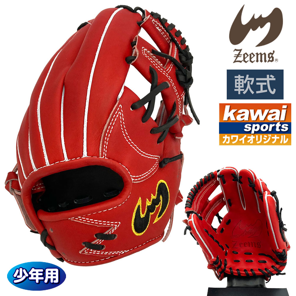 ジームス 軟式 ジュニア グローブ 内野 オーダーグラブ 三方親 湯もみ型付け済 カワイオリジナル 野球 中型 20CJN 右投げ レッド×ブラック×ホワイト糸