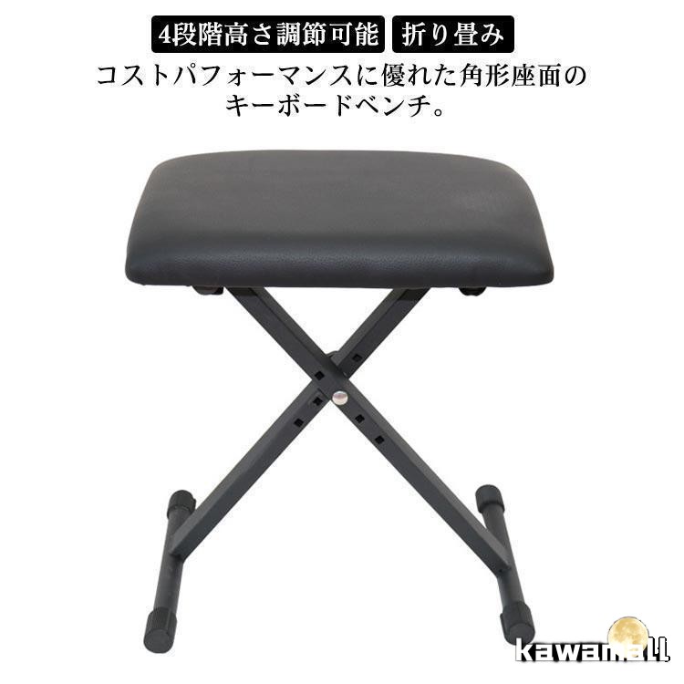 キーボードチェア 折りたたみ 高さ調節 4段階 キーボード ピアノ 椅子 クッション キーボードベンチ キーボードイス チェア 背もたれなし スリム