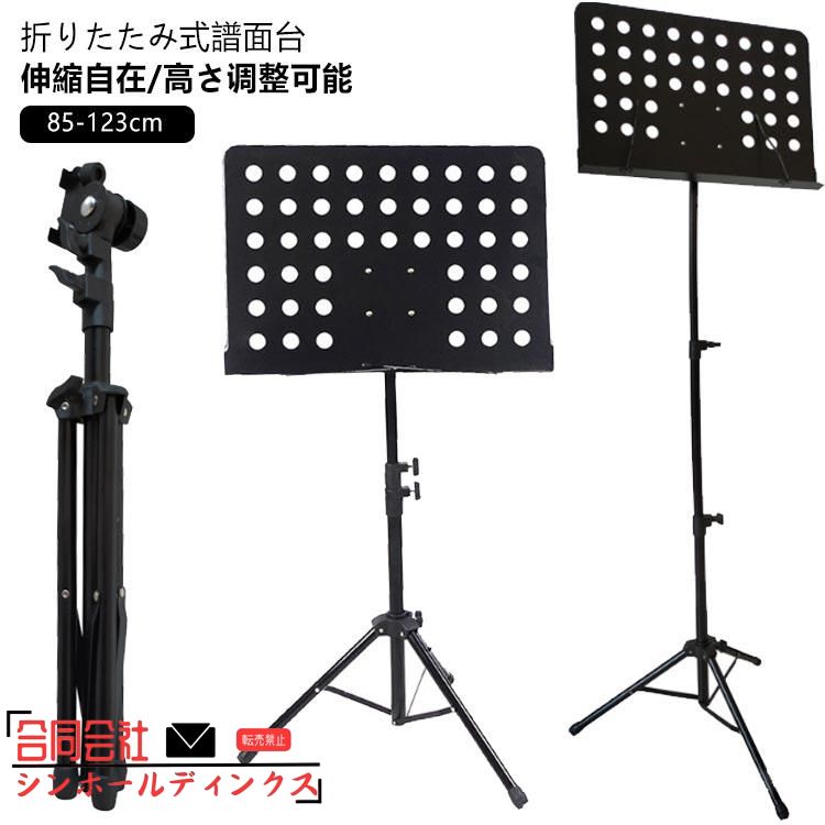 譜面台 折りたたみ 軽量 ミュージックスタンド 譜面立て 楽譜立て ケース 付き 高さ調節 角度調節 楽器 ギター 楽譜スタンド スチール 85-12
